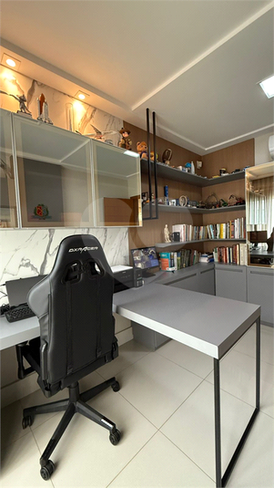 Parte inferior: 1 quarto, sala de estar integrada com a sala de jantar, banheiro social, cozinha e escritório. Área gourmet com churrasqueira, sauna e banheiro social. Garagem para dois carros cobertos.