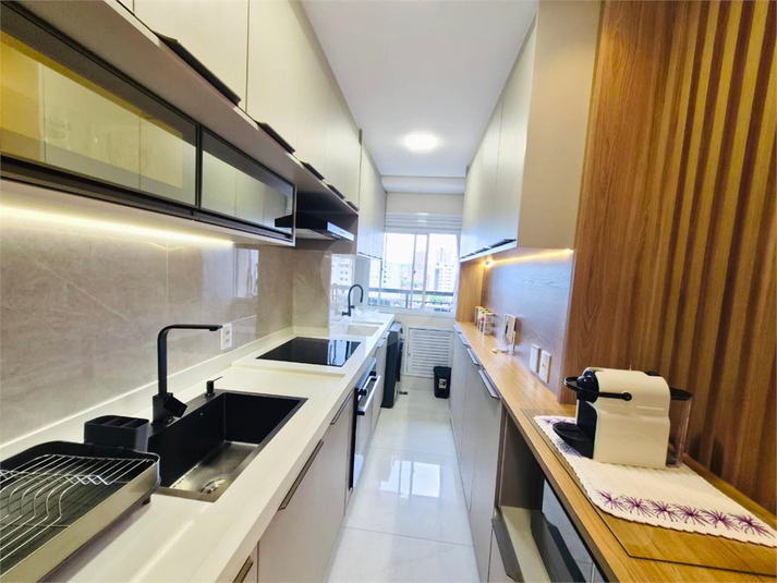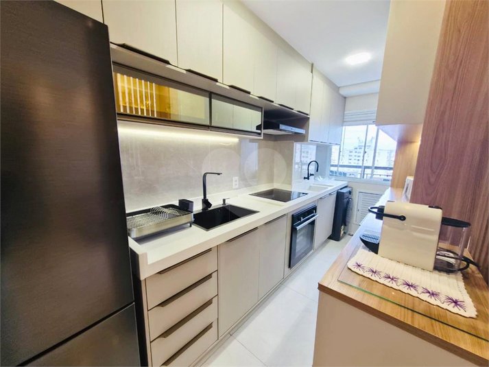 A cozinha é totalmente montada e equipada, com acabamento de alta qualidade.